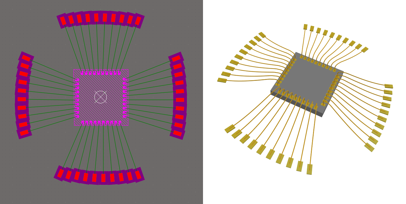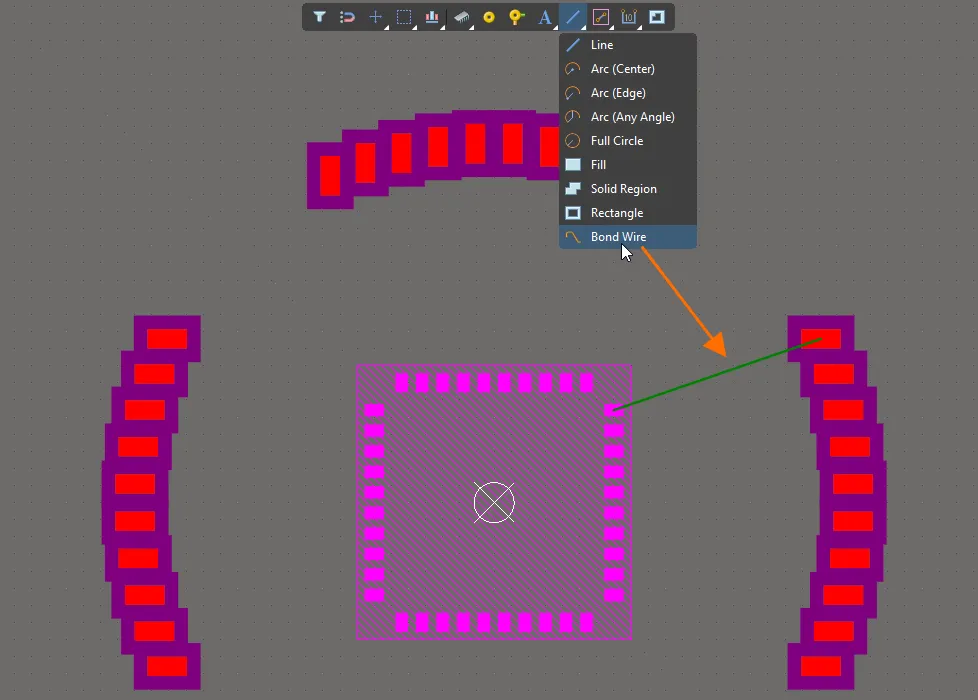 Altium Designer支持具有多行鍵合線的設(shè)計(jì),確保靈活性和可擴(kuò)展性。這個(gè)功能有助于開發(fā)詳細(xì)和高密度的鍵合線設(shè)計(jì)。