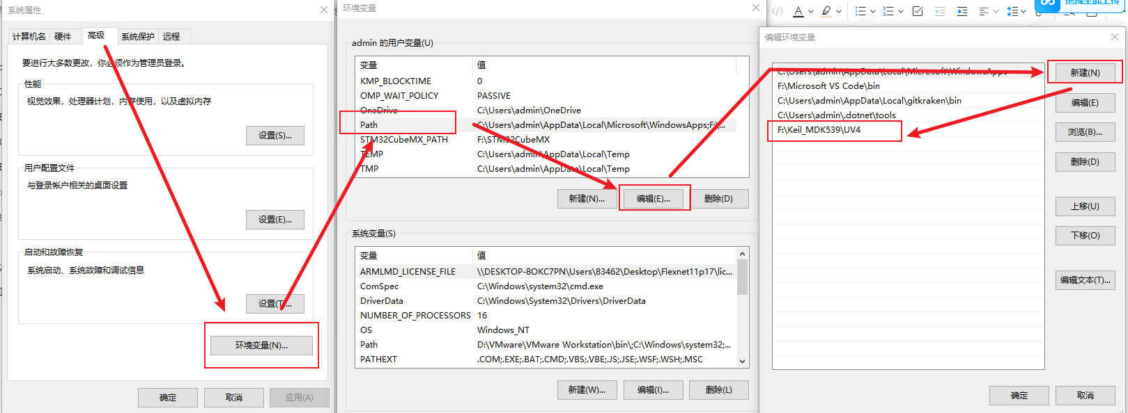 2)、但是這個軟件是無法雙擊運行的,需要通過命令行執行。而且如果直接通過命令行調用,也是無法使用的,會提示沒有該命令。因此我們需要添加環境變量,具體操作如圖3所示,將keil的UV4目錄加入進環境變量中。