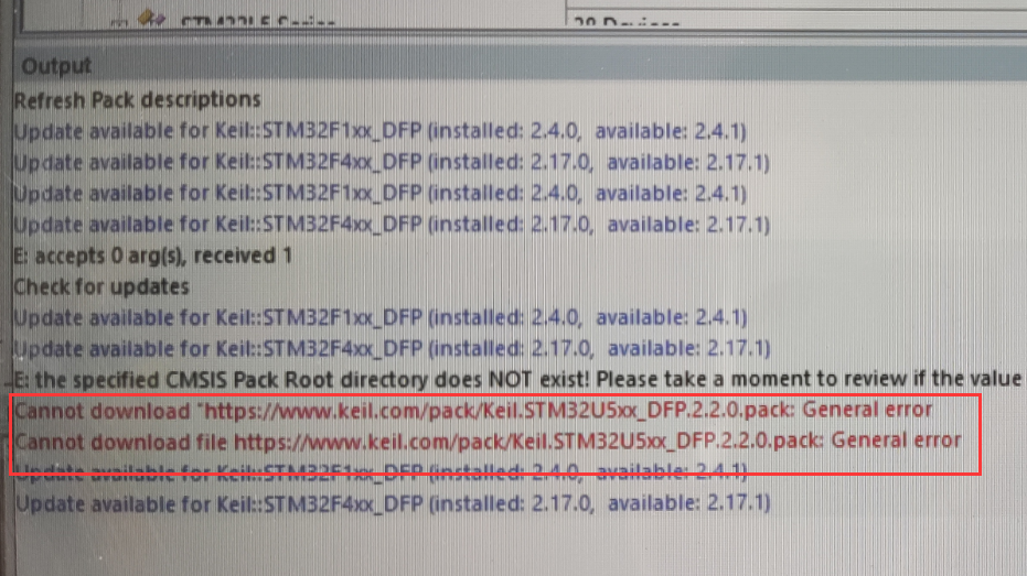 PackInstaller報錯信息為:Cannot download https://www.keil.com/pack/Keil.STM32U5xx_DFP.2.2.0,pack: General error