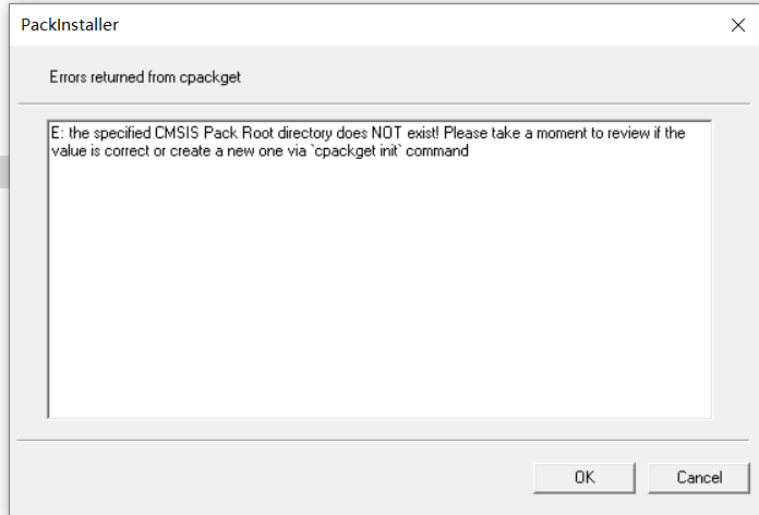 pack包報錯信息為:E: the specified CMSIS Pack Root directory does NOT exist! Please take a moment to review if the value is correct or create a new one via?cpackget init?command
