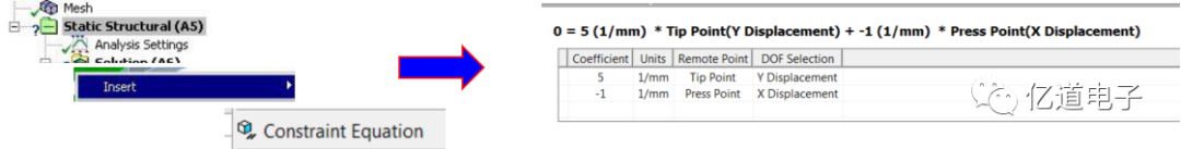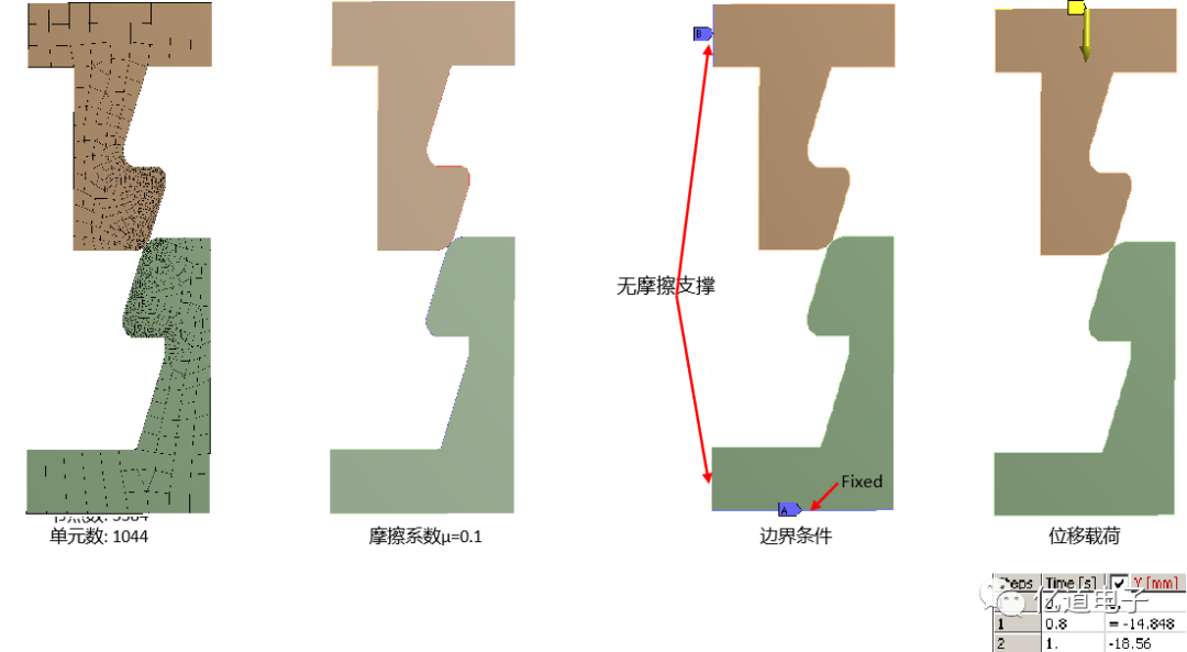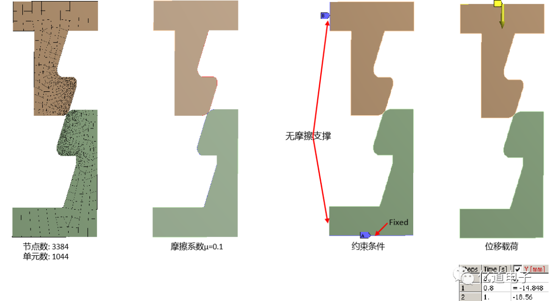 卡扣插入力仿真的分析方法2 帶約束方程的靜力學分析
