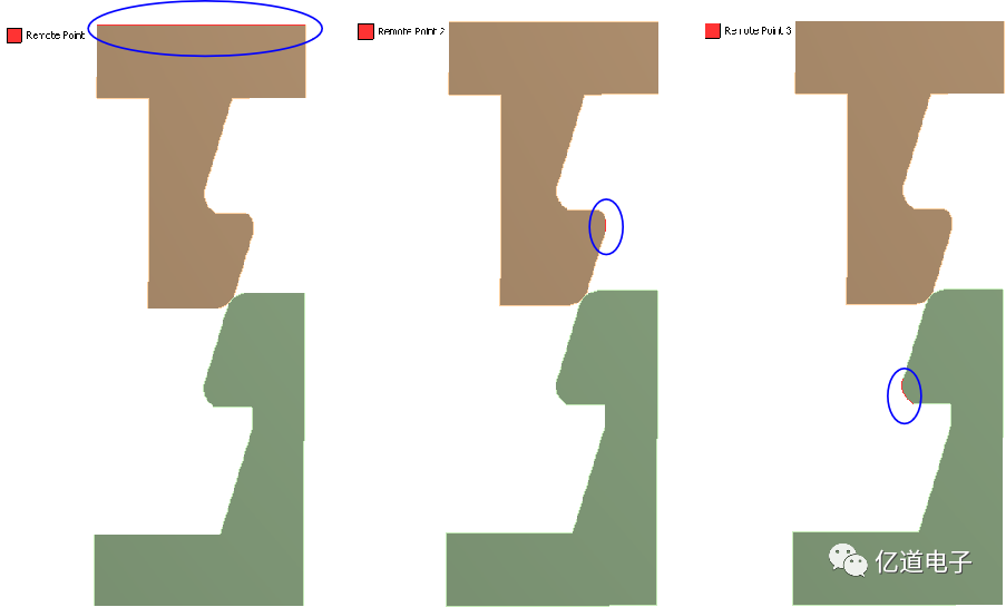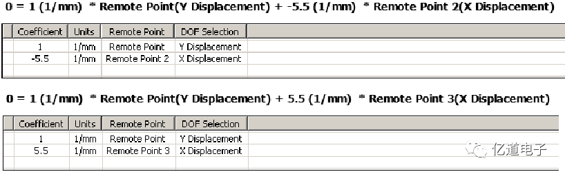 - 定義了三個遠程點,然后使用約束方程將它們連接起來,以模擬卡扣插入彎曲的過程。