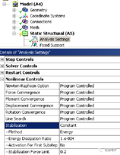 - ANSYS 中的非線性穩定可以被認為是向系統中的所有節點添加人工阻尼器。