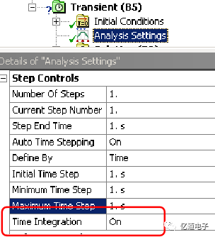 - 在第1步中關閉“時間積分”。這有助于將分析作為第1步的靜力學分析求解,從而更快地求解。開啟第2步。