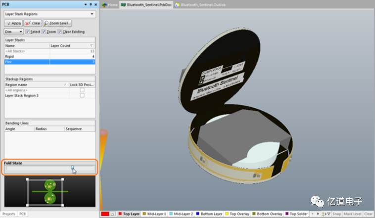 在一些行業中出于可靠性和安全性的考慮,傳統的PCB剛性板和柔性板通過連接器連接的設計方法逐漸被淘汰,剛柔板結合的設計正在被廣泛應用。并且柔性PCB板比鋪銅電路板更輕、更省空間,可以折疊、彎曲、擠壓進非常小的空間,利于產品小型化。AD的剛柔板結合設計功能,完美的實現剛柔板結合設計,并且在3D模式下可以創作3D影像動畫,以豐富易懂的形式展示PCB的折疊過程。