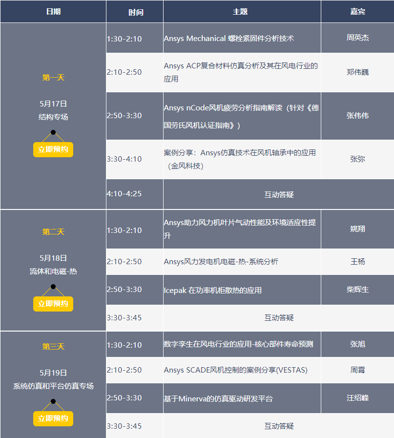 Ansys為風電行業工程開發、制造和實際運行提供了全面的多物理場、多尺度的仿真解決方案。5月17日-19日,繼輸配電行業應用這一主題后,Ansys官方將繼續推出『工程仿真解決方案在風電行業中的應用』在線主題論壇,屆時與Ansys多位行業專家及客戶一起,共同探討風電行業從高精度多物理場仿真中獲益的杰出實踐,了解更多有關Ansys在風電行業應用的解決方案。