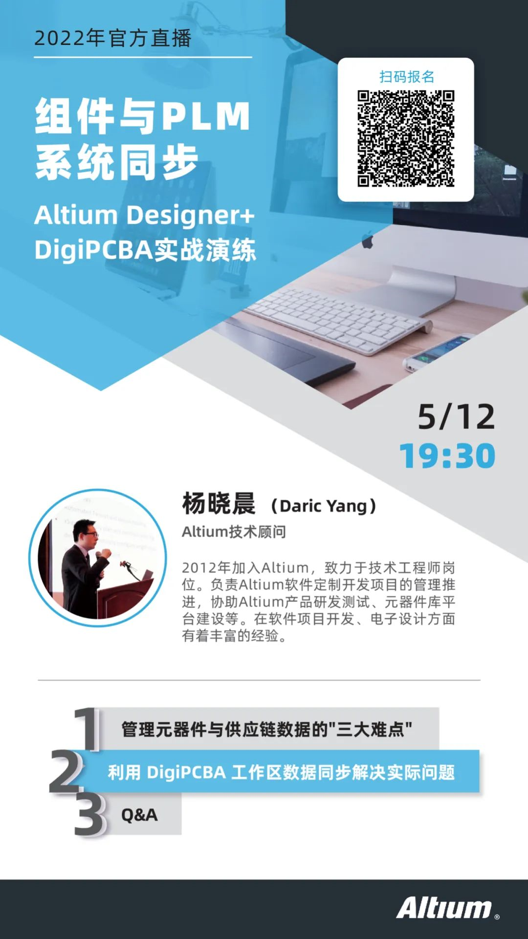 本周四5月12日19:30,Altium Designer + DigiPCBA系列課程將迎來最后一節:“組件與 PLM 系統同步”,該系列的往期課程回放已上傳至B站【Altium中國】,錯過直播的同學可前往觀看。