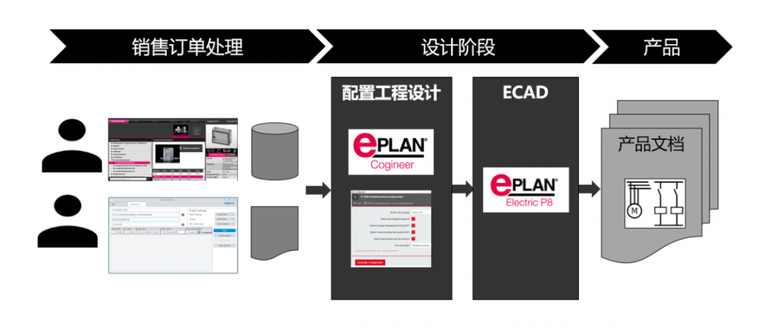 EPLAN推出的配置式出圖解決方案完美契合線體商們的需求。配置式出圖我們稱之為CTO設計模式,即Configuration to order。通過配置的方式來快速出圖,大幅度縮短電氣工程師出圖時間。配置式出圖解決方案是基于EPLAN宏技術實現圖紙的復用,即便是非標產品,也能夠分解出來可以復用的功能塊,將這些功能塊定義為EPLAN的“宏”,EPLAN Cogineer根據條件來選擇宏和參數,能實現配置式出圖。采用CTO設計模式之后,我們可以根據銷售訂單中的配置信息,使用Cogineer快速生成標準圖紙,在Electric P8 進行簡單的細節調整之后,就可以完成項目圖紙(包含電氣原理圖和氣路圖)繪制。