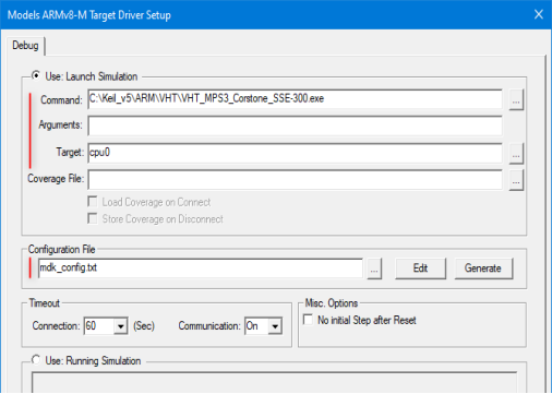 Fast Models Debug Driver Configuration詳細解釋了配置對話框。
