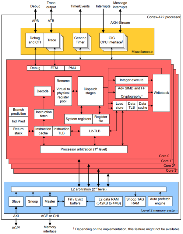 Cortex-A72處理器是Armv8-A架構下的一款高性能、低功耗的處理器。它最多支持4個內核,內置L1和L2高速緩存。