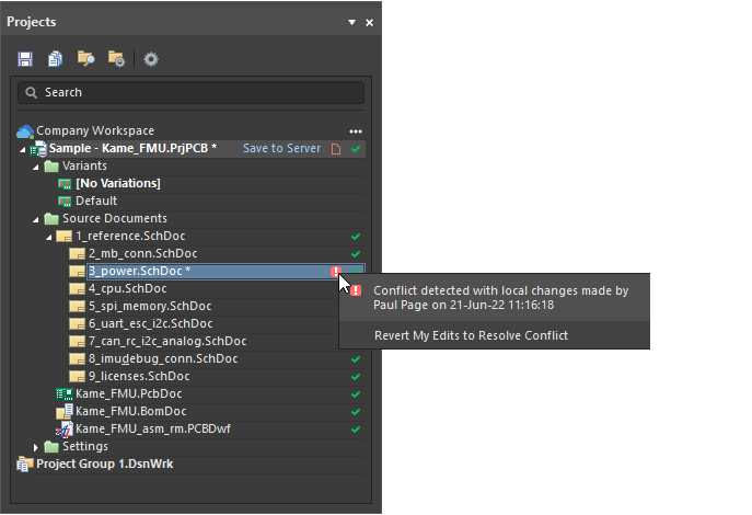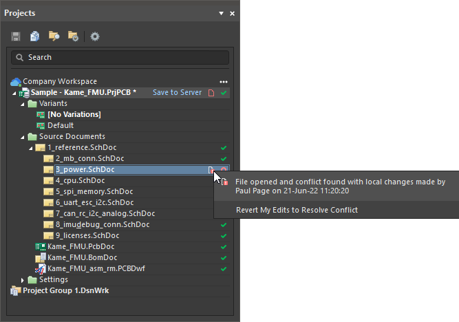 當多個用戶正在編輯作為工作區項目一部分的相同“軟鎖”文檔時,項目面板中會出現相關的沖突狀態圖標。在此版本中,軟鎖功能提供的沖突狀態圖標現在可以操作。您可以單擊圖標通過恢復編輯來解決沖突。