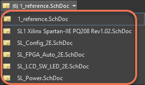 當大量的文檔打開時,會按文檔類型分組,或者使用Preferences對話框的System - View頁面上的Group documents by kind選項按項目分組。在此版本中,文檔列表按字母順序排序。當在System - View頁面上啟用By document kind選項時,文檔將按字母順序排序。啟用By Project選項后,文檔將在文檔類型中按字母順序排序。下圖示例顯示了按字母順序排列的原理圖文檔分組。
