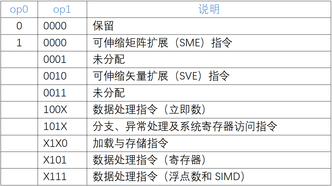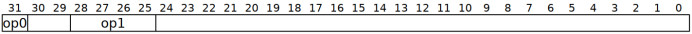 A64指令集中每條指令的寬度為32位,其中第25-28位用來識別指令的分類,如下圖所示: