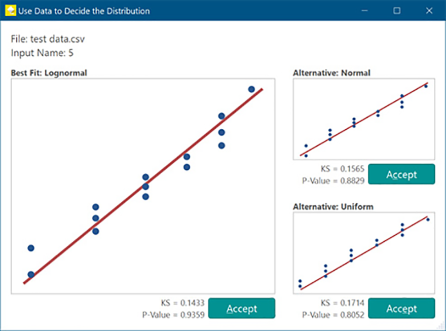 對(duì)于傳輸方程中的每個(gè)因子,確定其數(shù)據(jù)的分布方式。一些輸入可能遵循正態(tài)分布,而另一些則遵循三角分布或均勻分布。然后,您需要確定每個(gè)輸入的分布參數(shù)。例如,需要為遵循正態(tài)分布的輸入指定均值和標(biāo)準(zhǔn)差。如果您不確定數(shù)據(jù)遵循哪種分布,可以使用 Engage 和 Workspace 提供的工具來(lái)確定。