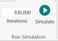 然后,在功能區(qū)中,選擇要運(yùn)行的模擬數(shù)量(100,000 是不錯(cuò)的基準(zhǔn)),然后單擊用來(lái)運(yùn)行模擬的按鈕。
