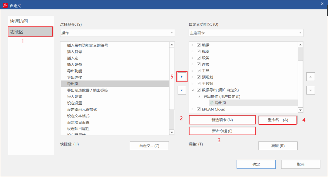 ??這里舉例分別將新建的選項卡和命令組重命名為【數據導出】和【導出操作】