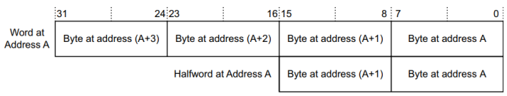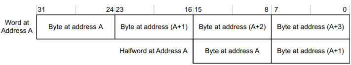 也可以把地址空間看做是231 個(gè)16位的半字組成。如果半字的地址是A那么組成半字的兩個(gè)字節(jié)地址分別為A和A+1。