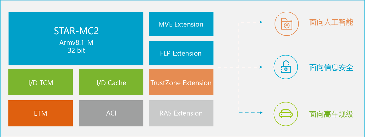 具體來講,相較于上一代產(chǎn)品,“星辰”STAR-MC2處理器大幅提升了三個技術方向。計算能力方面,標量計算性能提升45%,矢量計算性能提升200%,AI處理能力提升9倍;系統(tǒng)信息安全能力方面,針對TrustZone?技術做了進一步改進和提升,兼容軟硬一體的Arm PSA平臺安全架構方案,能夠充分保護物聯(lián)網(wǎng)和車載設備的信息安全;功能安全能力方面,提供符合ISO26262標準的功能安全支持,最高可達ASIL-D級別,可大幅簡化芯片開發(fā)并加速符合車規(guī)級要求的認證,助力國內(nèi)芯片廠商加快創(chuàng)新步伐。