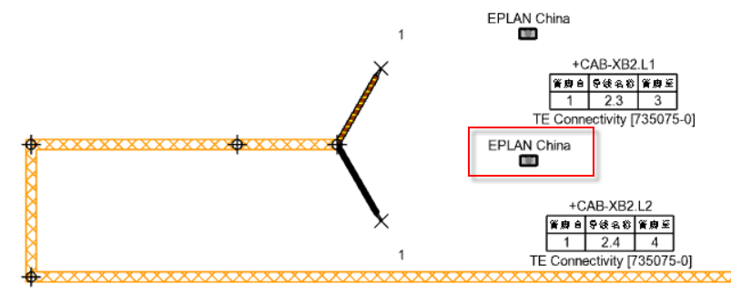 在菜單欄的【工作區】-【應用顯示配置】,更新上一步驟修改的釘板圖顯示配置,應用后如下圖效果,在線束的物料清單表中可以看到【TE.735075-0】的【EPLAN】列中的【EPLAN China】值,如下圖。