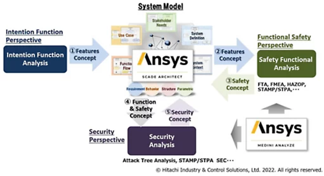 日立工業與控制解決方案公司采用Ansys解決方案管理汽車功能安全與信息安全的流程圖