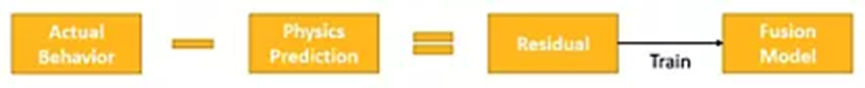 以這種方法應用融合模型,能夠在保留已知物理信息的情況下運行機器學習。本質上,可以構建融合殘差模型來補償質量極差的物理模型。在這些情況下,融合模型更像是數據模型,并且與其他數據模型一樣,基本物理特性可能會被掩蓋或丟失。然而,即便在這種狀況下,低質量物理模型至少依然能對機器學習部分產生一定的約束。