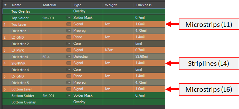 眾所周知,微帶線、帶狀線或共面布置的層厚會影響數字或模擬信號的損耗。明智地選擇需要支持高速/高頻信號的信號層中的電介質厚度可以解決上述損耗的一個方面。此外,為外露走線選擇合適的材料和電鍍材料可以降低高頻損耗,例如在需要精確信號完整性的毫米波設計中。總之,這些步驟有助于確保信號在路由到互連末端時經歷低損耗。