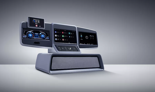 先進的數字駕駛艙域控制器,包含一個驅動五個顯示器的片上系統(SoC),同時提供高水準音頻和最新一代的連接技術