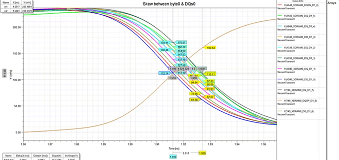 偏移仿真是信號相對時鐘的時間差。該仿真可確保同一組中的信號同時傳輸數據,并避免數據有效窗口沖突