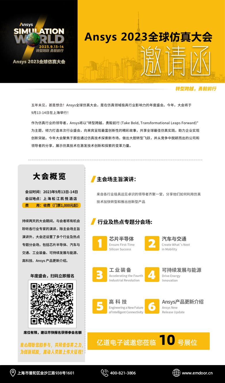 即將在9月舉辦的Ansys 2023全球仿真大會中,推出「汽車與交通」專題分會場,將由“整車及智能化”,“電氣化”兩大主題方向組成,探討仿真在汽車與交通領域中的應用,重點介紹仿真在電氣化、智能化和自動駕駛等領域的最新進展,以及在創造未來交通的過程中所發揮的作用,歡迎報名參會。
