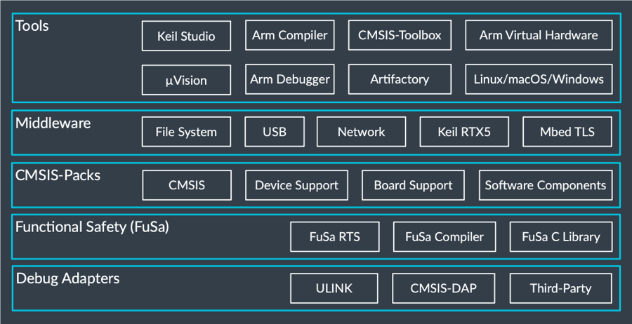 CMSIS-Pack系統(tǒng)實現了易于產品生命周期管理,從編寫的第一行代碼到完成和維護都提供了出色的支持。