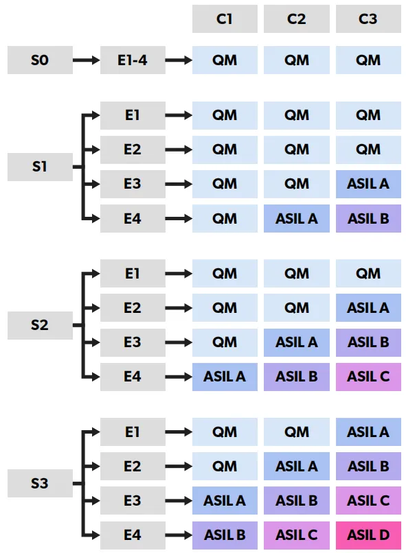 ASIL由三個因素決定:嚴重程度、暴露度和可控性。