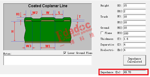 一般來說,看了PCB設計,看到走線如果不是偏極限的話,高速先生也開始覺得是我們板廠的問題了。于是我們和板廠的同事聊聊,希望從他們那里得到一些有用的信息。果然,板廠的同事提供了一條很有用的信息,說客戶比較相信自己算的阻抗,因此讓板廠盡量不調整線寬,客戶算的阻抗圖如下所示: