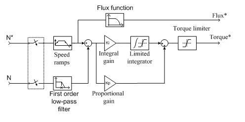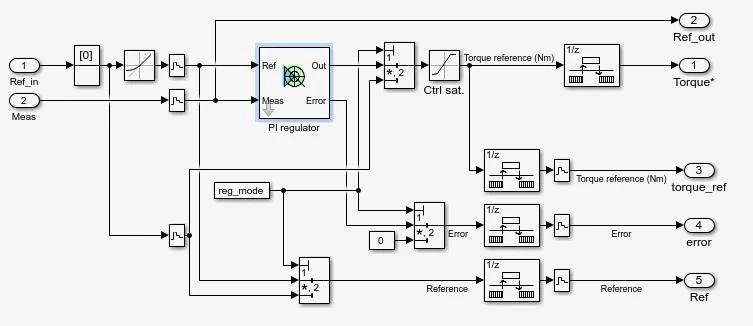 實現電機對給定轉速的追蹤,并作為控制外環,將輸出作為轉矩的給定信號送入轉子磁鏈定向控制模塊。雙擊此模塊,具體結構如下:
