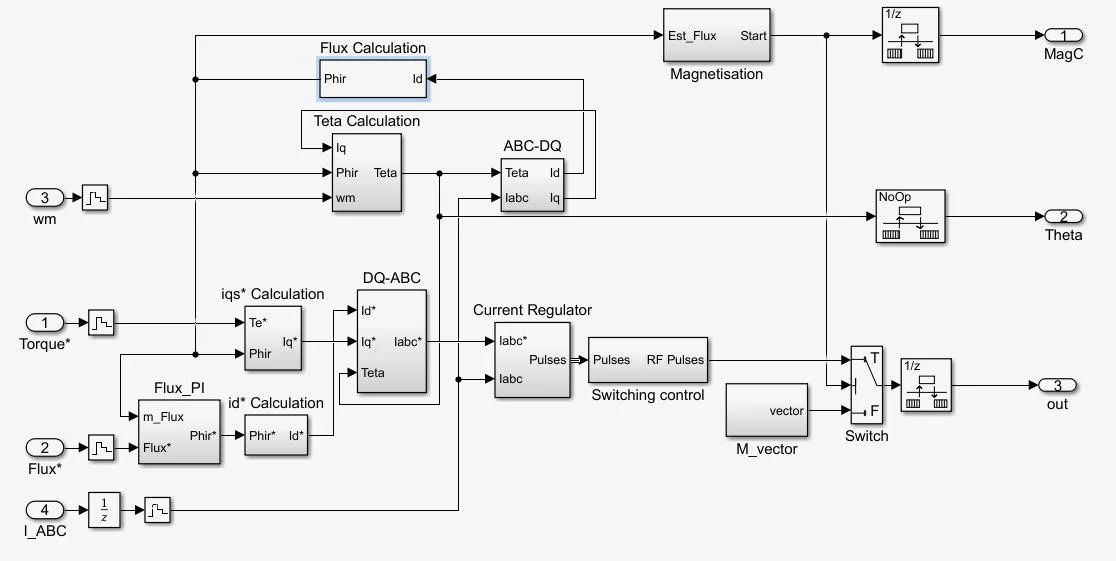 1)、Flux calculation(轉子磁鏈ψr計算模塊)通過定子電流的d軸分量計算轉子磁鏈。
