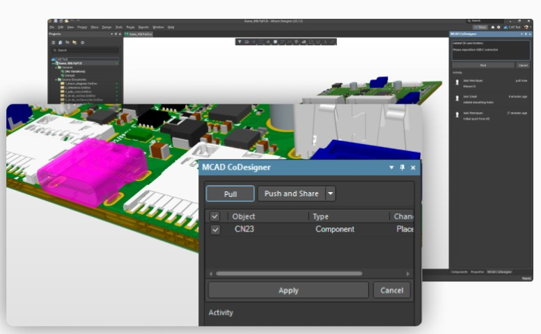 將電子和機械協同設計這一傳統挑戰轉化為我們的競爭優勢,在不喪失設計意圖的溝通和交流時間的情況下無縫地跨領域工作。ECAD 和 MCAD 工具之間的雙向數據傳輸讓您可以輕松地與機械團隊協作并共享設計版本。與Inventor ? , SOLIDWORKS ? 和 PTC Creo ? 等原生機械設計工具集成的方式比傳統的容易出錯的數據交換方法要快上 10 倍。幫助工程師解決以下機電協同問題: