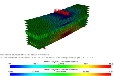 DIGIMAT-HC是針對存在蜂窩狀加強結構的復合材料專用設計工具。可針對蜂窩狀結構的蒙皮和中間的蜂窩狀夾層進行建模,并利用有限元求解器計算材料的抗彎、抗剪力學性能。
