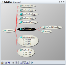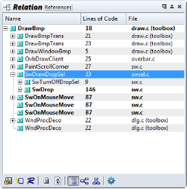 Relation Window 是 Source Insight 的一項(xiàng)創(chuàng)新,可顯示函數(shù)/符號(hào)之間的相互關(guān)系。 它在自己的面板窗口中在后臺(tái)運(yùn)行,并跟蹤您選擇的符號(hào)。 它可以顯示類層次結(jié)構(gòu)、調(diào)用樹、引用樹等。