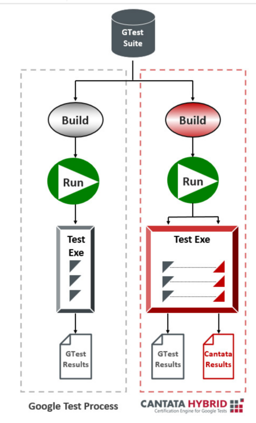 CANTATA HYBRID是CANTATA?的一個(gè)專(zhuān)門(mén)子集,使測(cè)試能夠使用非CANTATA測(cè)試套件(即GoogleTest? 和GoogleMock?)作為輸入運(yùn)行,以生成CANTATA測(cè)試結(jié)果證據(jù),并結(jié)合來(lái)自經(jīng)過(guò)認(rèn)證的 單元測(cè)試工具的代碼覆蓋。