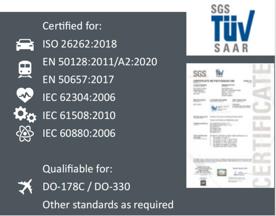 ?通過(guò)ISO 26262, DO-178C/DO-330, IEC 61508等安全標(biāo)準(zhǔn)認(rèn)證