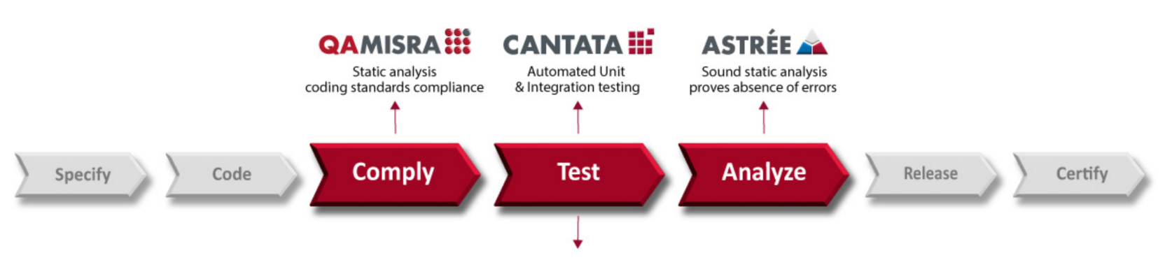 QA Systems靜態(tài)分析和動(dòng)態(tài)軟件測(cè)試工具支持以下軟件開(kāi)發(fā)線(xiàn)性流程中的驗(yàn)證。我們建議對(duì)這些驗(yàn)證階段應(yīng)用順序方法,并針對(duì)每個(gè)目的使用工具。