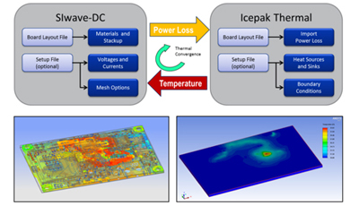 - SIwave-DC和 Icepak之間的自動化迭代收斂解決方案為IC封裝和PCB提供了雙向電子冷卻解決方案。