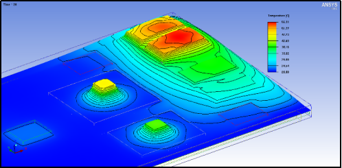 基于讀入的ECAD數據,ANSYS Icepak軟件能抽取印刷電路板和封裝的詳細導熱系數圖。對印刷電路板,能從電子布線和印刷電路板分層信息中得出局部各向同性的導熱系數。這能準確模擬板級的導熱,在預測內部溫度和部件接點溫度時增加了可信度。