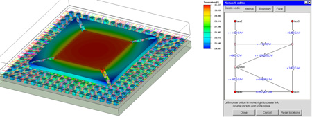ANSYS Icepak包含從詳細封裝模型抽取DELPHI封裝特征的自動過程。運行不同的邊界條件得到溫度和熱流量,然后創建優化的熱網絡模型。這個優化的DELPHI網絡模型能很容易加入到系統級仿真中,準確地預測系統級熱仿真中IC部件的接點溫度。