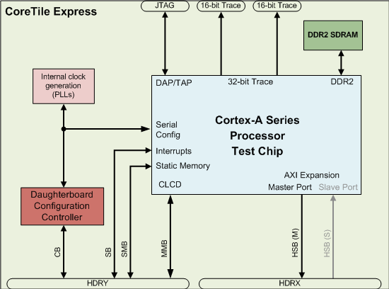 處理器子板 Express 板與Versatile產(chǎn)品系列中的前代產(chǎn)品的不同之處在于,其內(nèi)存和 LCD 控制器等高帶寬外設(shè)是與 ARM 處理器一起在測(cè)試芯片中實(shí)現(xiàn)的。這會(huì)顯示提升性能,使系統(tǒng)更適合進(jìn)行軟件基準(zhǔn)測(cè)試并完全能運(yùn)行Debian Linux等桌面操作系統(tǒng)。