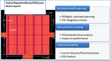移動及IoT設備的爆炸性增長以及這些設備對能耗效率要求的提高推動了對電源管理IP的需求。任何可能導致局部電流密度增加、電壓下降或噪聲耦合的設計缺陷都會影響電力配送。因此,設計人員必須找出此類缺陷,尤其是特定于電源管理電路的缺陷。因為電源管理IP廣泛應用于全芯片集成的多種功能模塊,設計人員必須在全芯片設計的背景下看待這些缺陷,這無疑更具挑戰(zhàn)。
