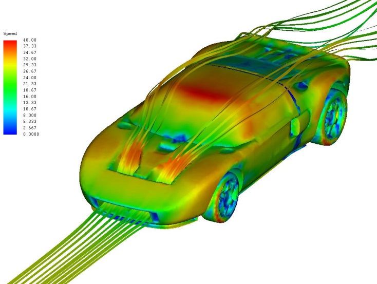· 整車外流場分析 以概念設計轎車的造型為研究對象,通過使用軟件Ansys Fluent對該車型進行外流場分析,模擬出整車滿載下的風阻系數、表面壓力分布云圖、車身流線分布情況等。