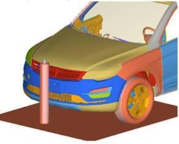· 行人保護分析 以整車前半部分和行人下腿模型為研究對象,通過使用Ls_dyna軟件進行行人保護仿真分析,根據行人下腿型撞擊結果,判斷對行人腿部造成的損傷程度。