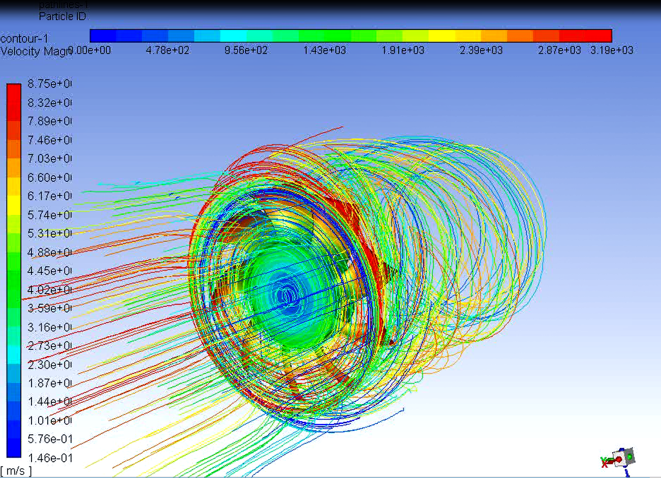 · 壓縮機曲軸潤滑系統流場分析 以壓縮機曲軸潤滑系統為研究對象,使用軟件ANSYS Fluent,分析了壓縮機曲軸潤滑系統內的流場結果,如流速云圖、流速軌跡線圖、出口流量等。