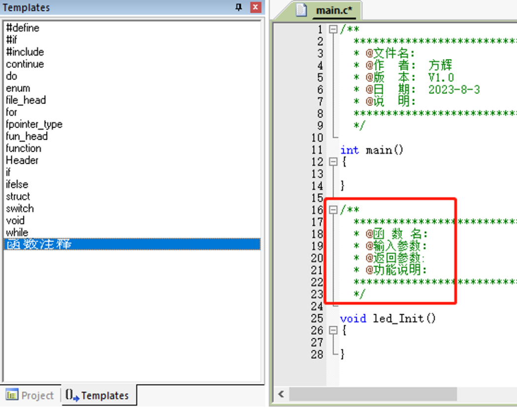 在書寫程序的時候需要對函數進行一些注釋,每次拷貝都需要來回切換界面,使用模板就可以方便地添加函數注釋。