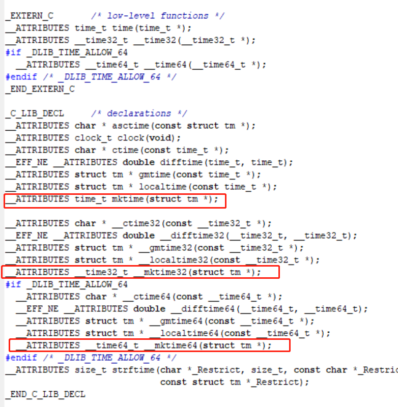 1 ?IAR 中的文件如下圖,有 mktime 、mktime32、mktime64